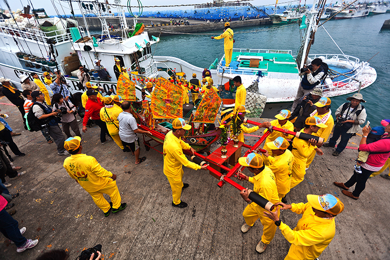 小琉球這個海島特有的迎王儀式,50艘載神轎的漁船集結在大福(大寮)漁港與白沙漁港,而後遶全島嶼海域一周,祈求各海岸及海港平安,並恭迎代天巡狩五府千歲蒞臨,場面十分壯觀。載有神轎的漁船到了自己的角頭(村莊)時,會停留一下表示敬意。